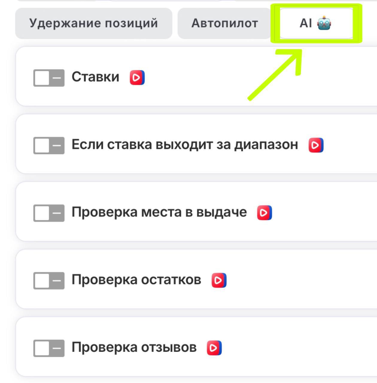 Зачем она нужна и как работает: ✔️ Теперь AI-стратегия идёт отдельно — и это важно. Раньше при включении общего тумблера (AI-управление ставками и ключами) вы теряли возможность вручную управлять условиями показов. С новой стратегией вы сами выбираете: • AI управляет ставками, а вы — ключами • Или наоборот: AI управляет ключами, а вы — ставками • Или используете классическую стратегию удержания позиций + AI-оптимизацию