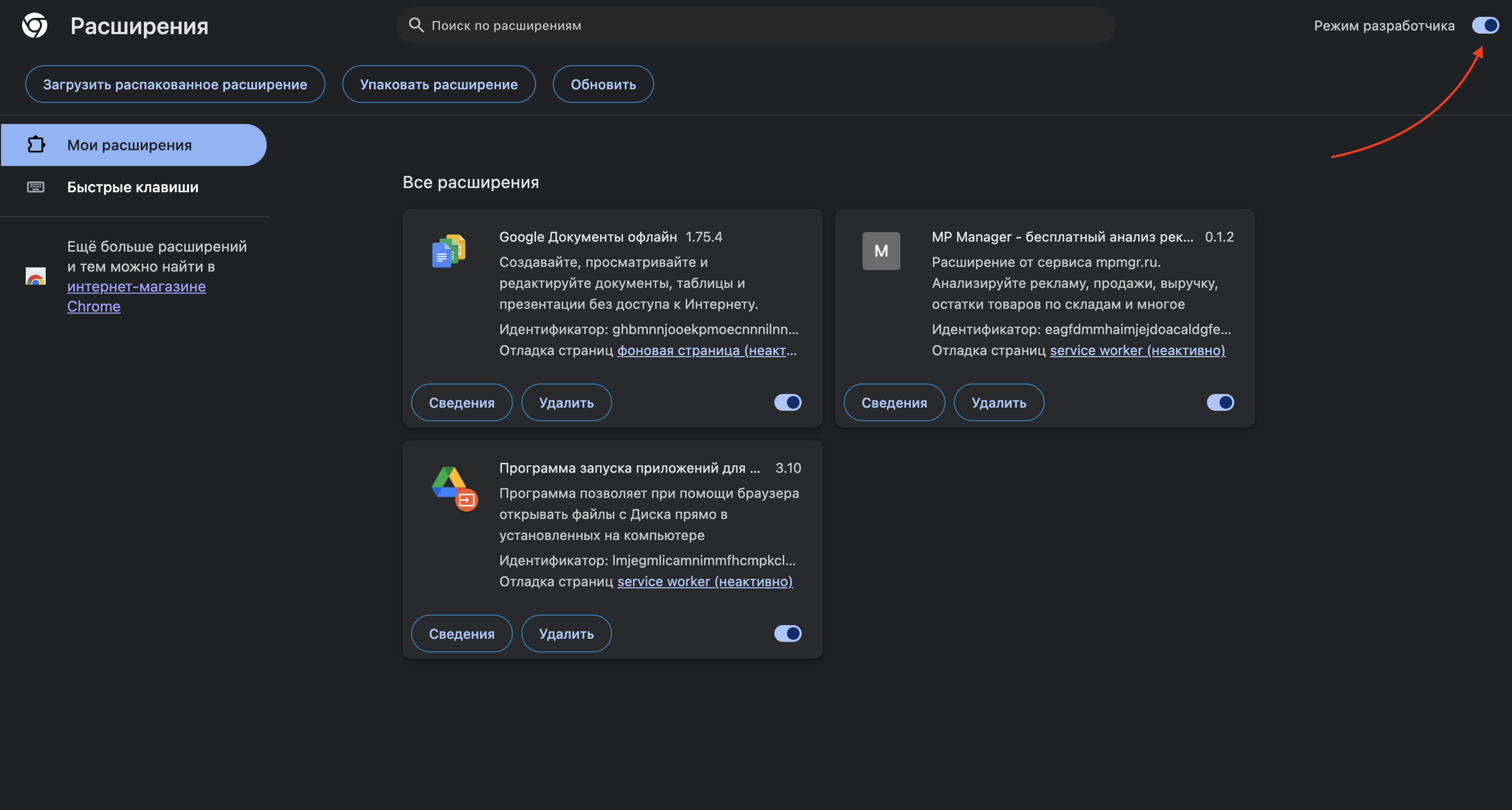 - Включите режим разработчика