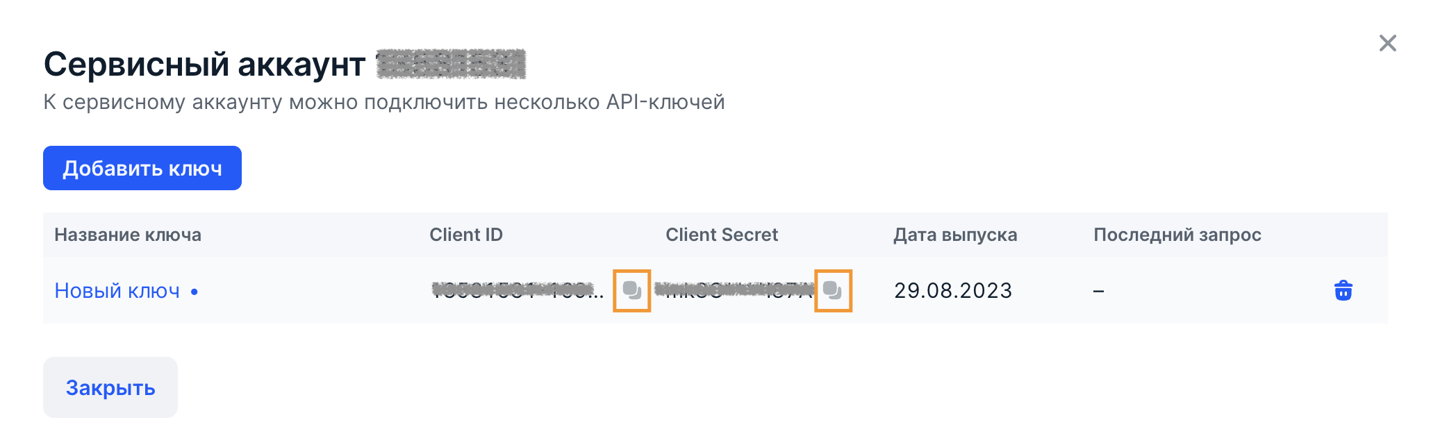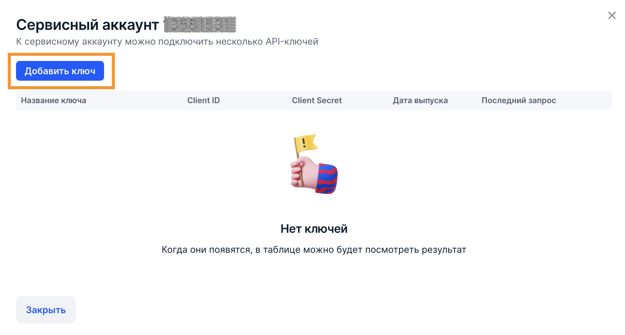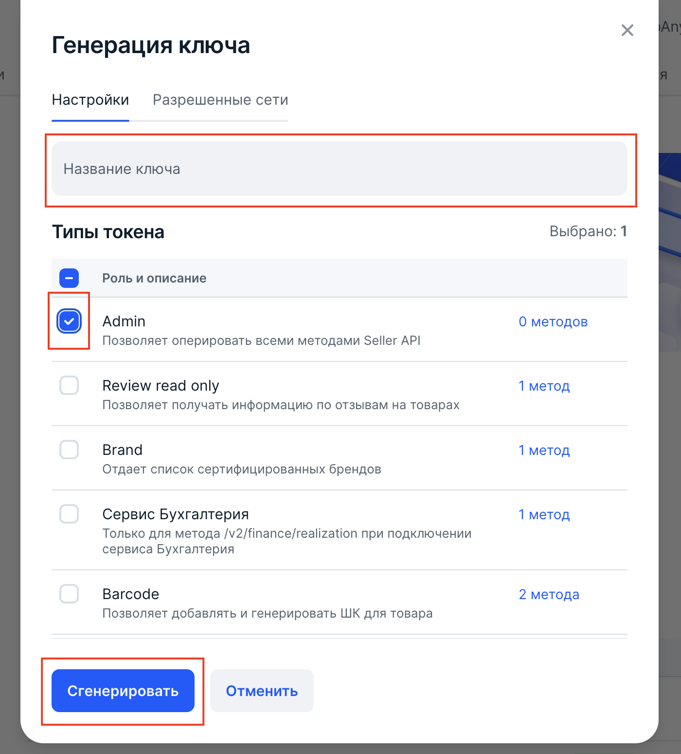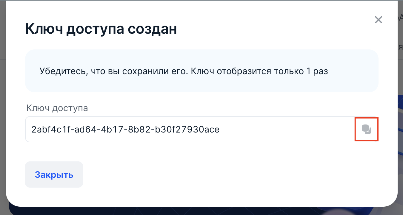 :::info Разрешение API ключа Для полного доступа и правильной работы сервиса используйте токен типа Admin.
