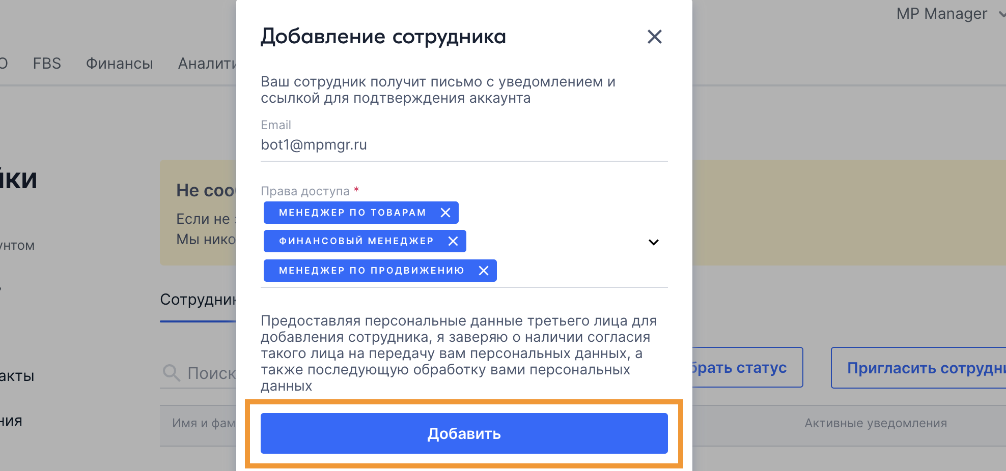 bot1@mpmngr.ru - Выберите роль Менеджер по товарам