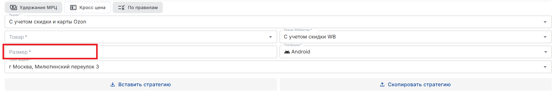 Поэтому, если у товара несколько размеров, и они есть в наличии, то сервис будет работать только в режиме управления ценой