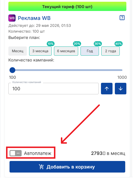 Чтобы отключить автоплатёж, достаточно у выбранной услуги переключить тумблер Автоплатежа: