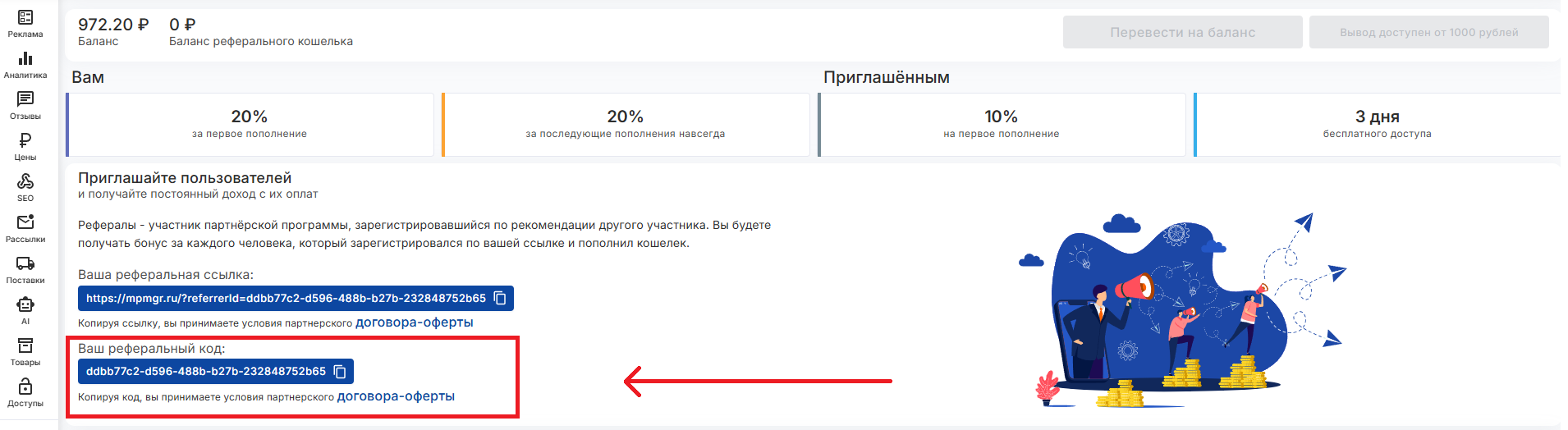Как получить реферальный код для приглашения пользователей