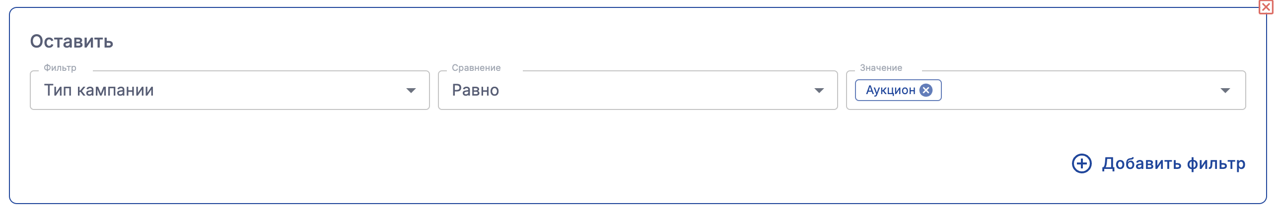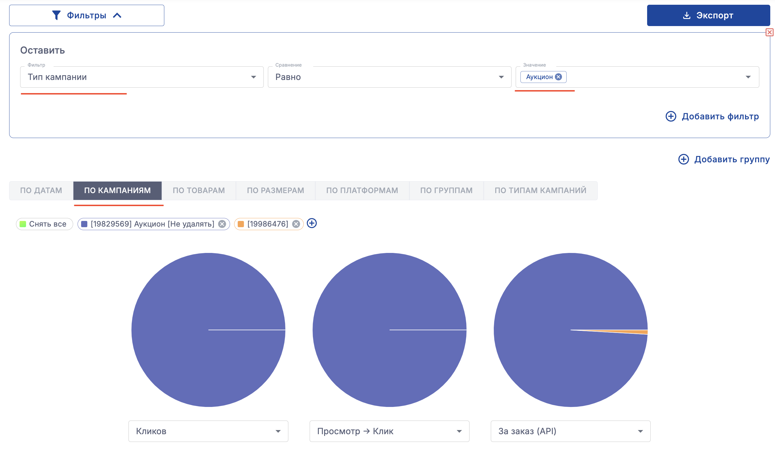Например, можно сравнить показатели среди кампаний Аукцион: