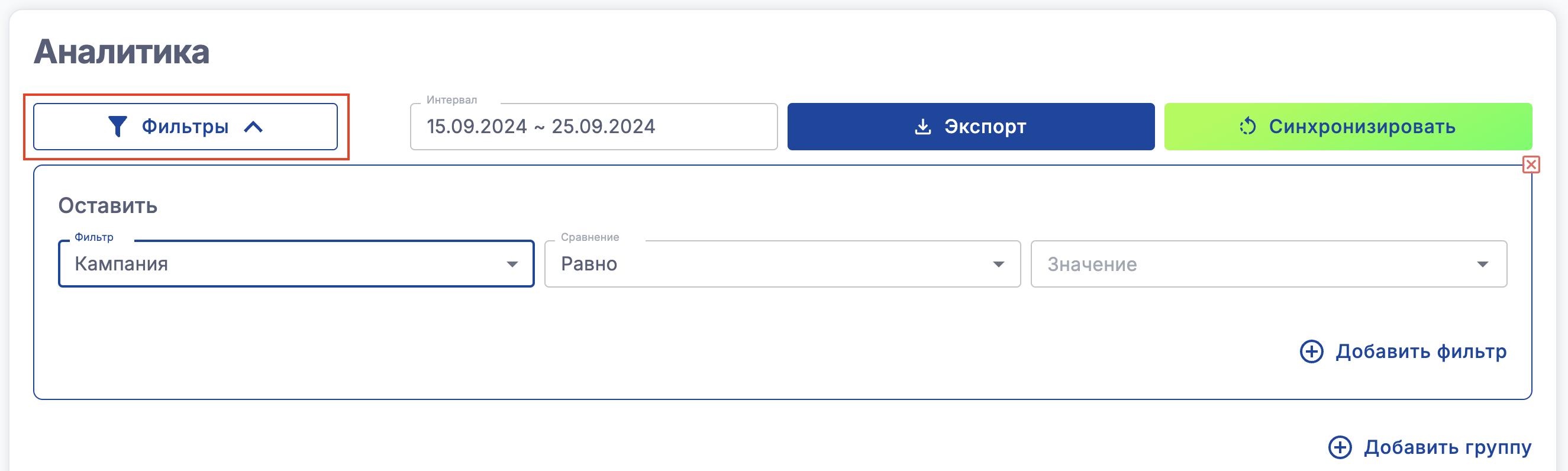 Также вы можете отфильтровать кампании и данные