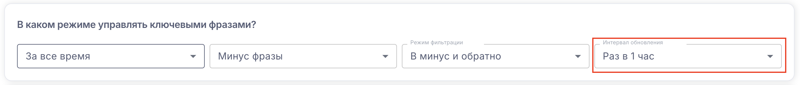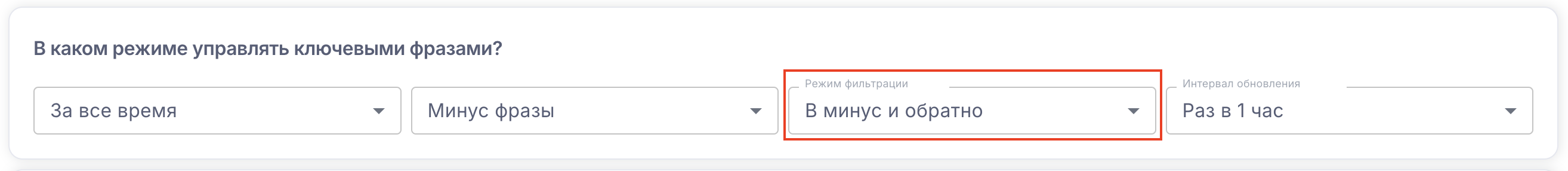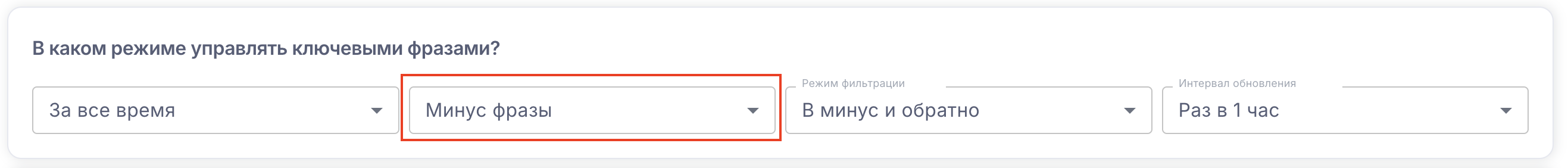 Выберите в каком режиме сервис будет управлять ключевыми фразами