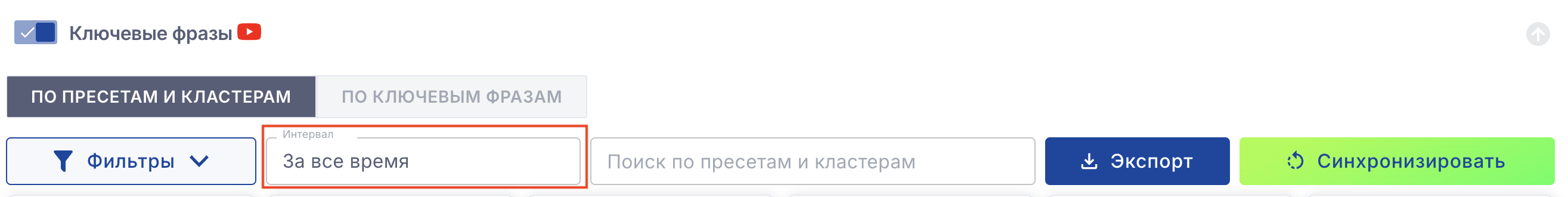 Выберите на какой период ориентироваться фильтрам ключевых фраз.