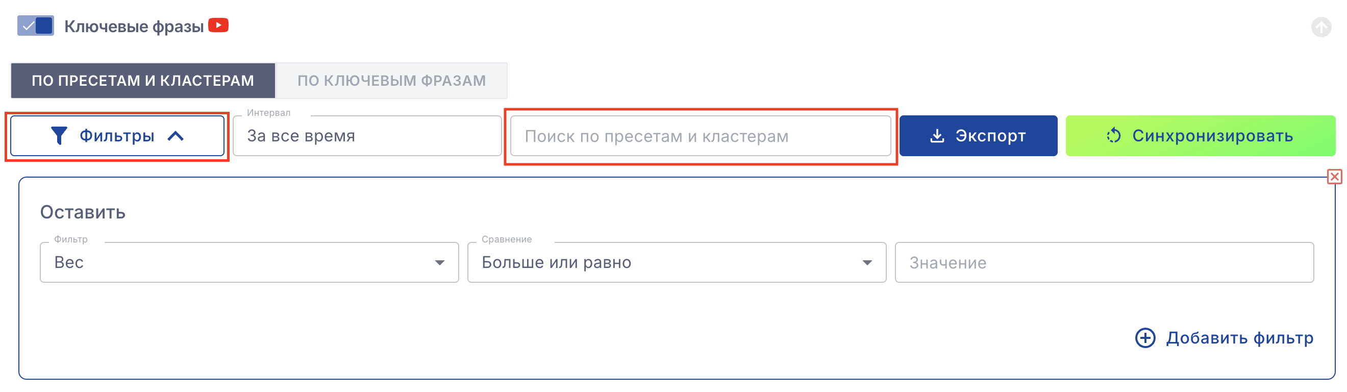 Фильтрация по пресетам или по ключевым фразам