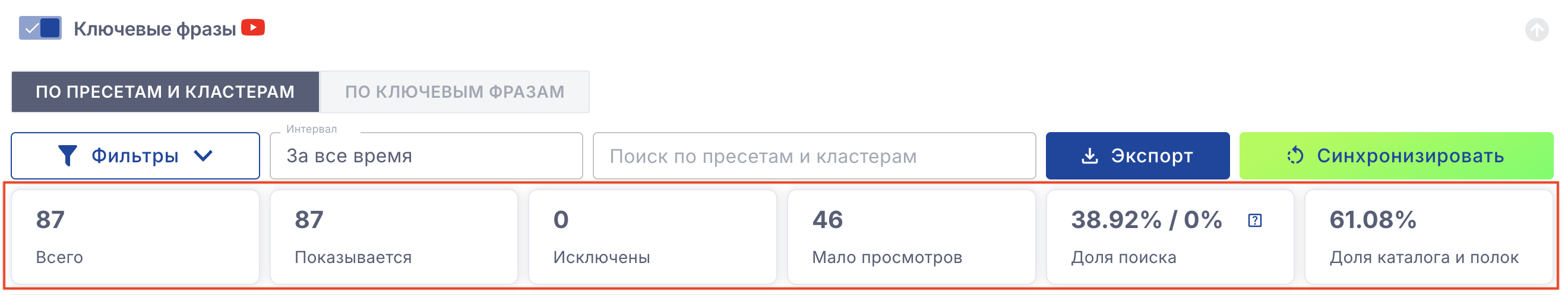 Ключевые фразы и статистика