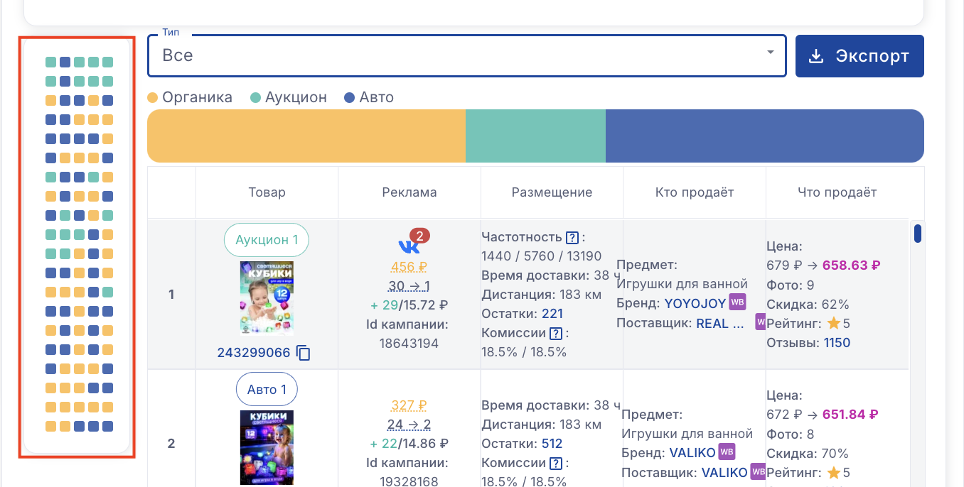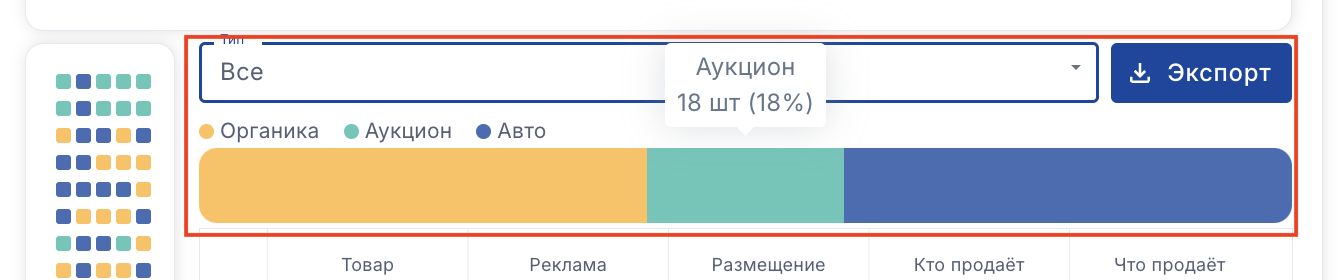 Вы можете оставить в списке только кампании одного типа или только органику. Или смотреть сразу всю выдачу