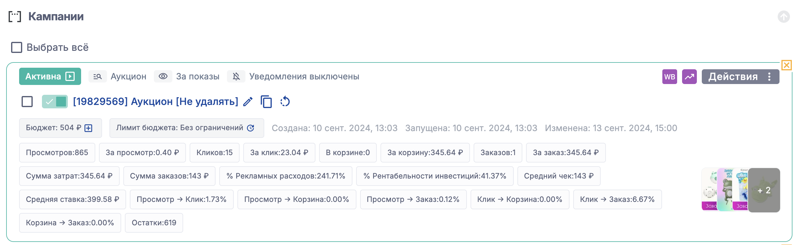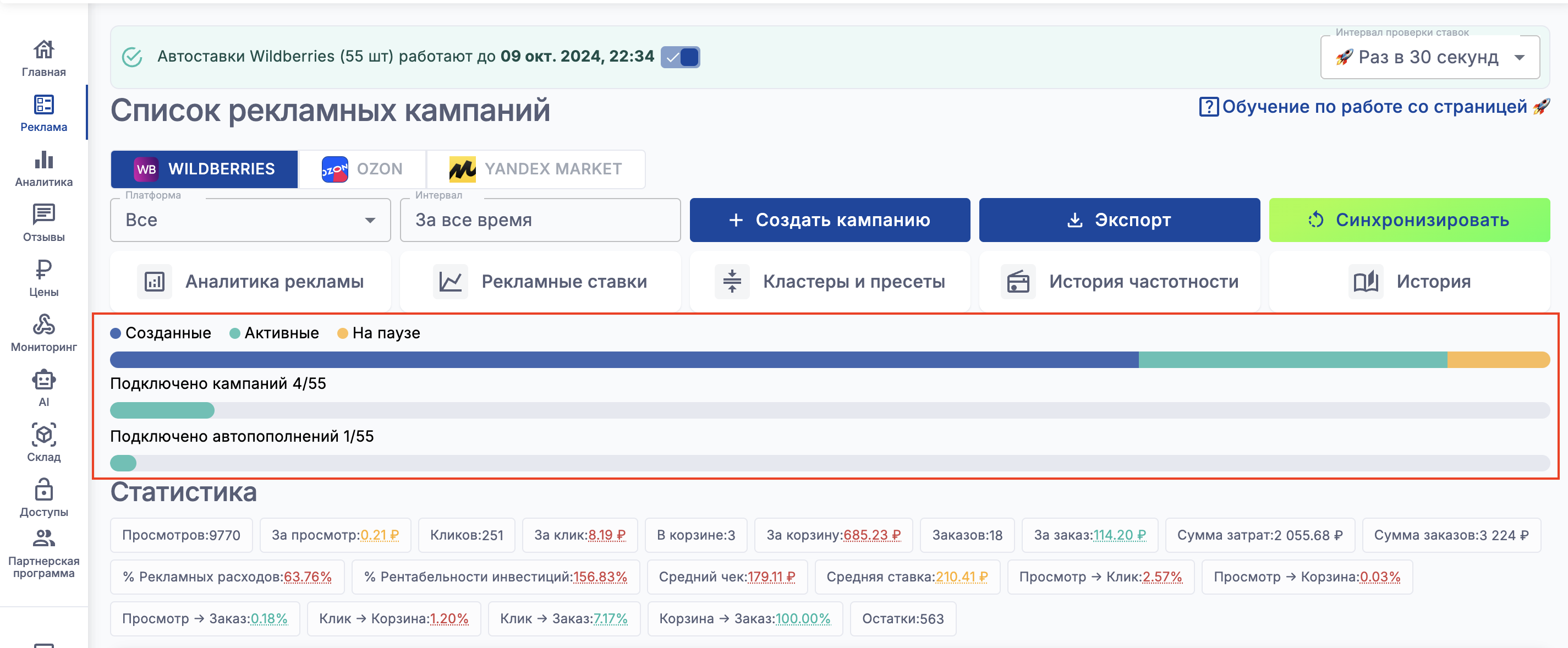 Список кампаний в API WB обновляется в течение 3х минут, поэтому даже после синхронизации кампании могут обновиться не сразу