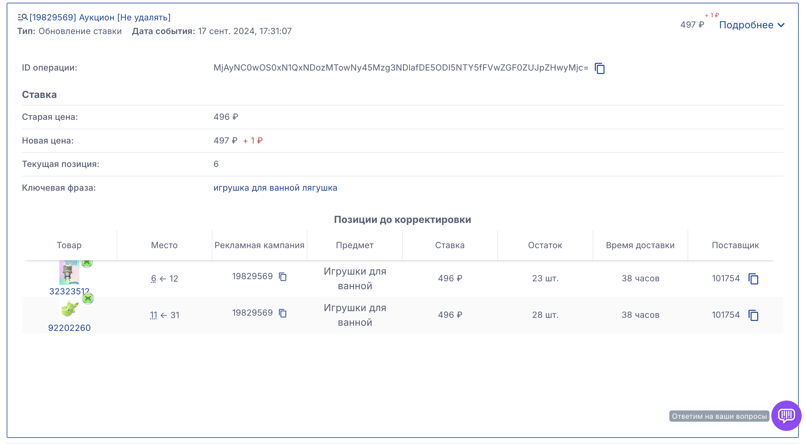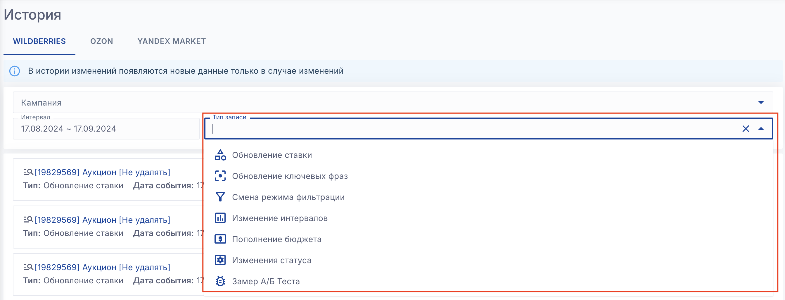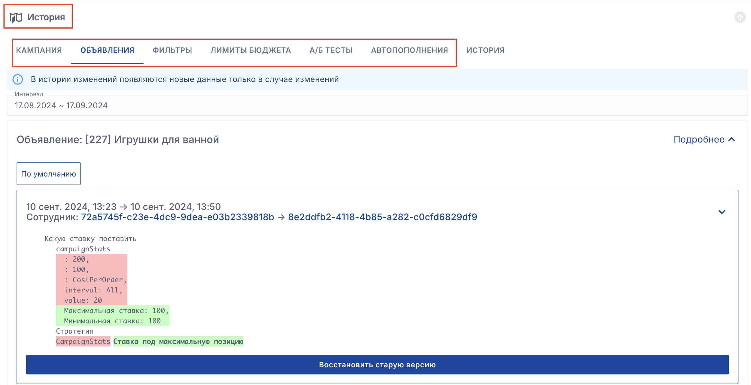 История действий пользователей находится внутри рекламных кампаний