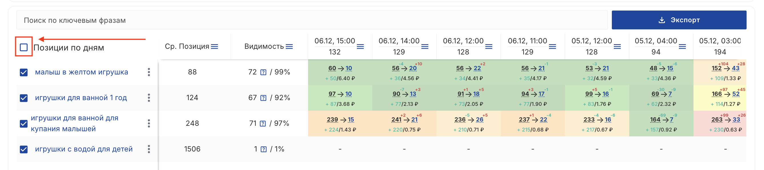 Если вам не нужны данные за каждый час, поставьте галочку у пункта "Позиции по дням", тогда будут отображаться только данные по дням
