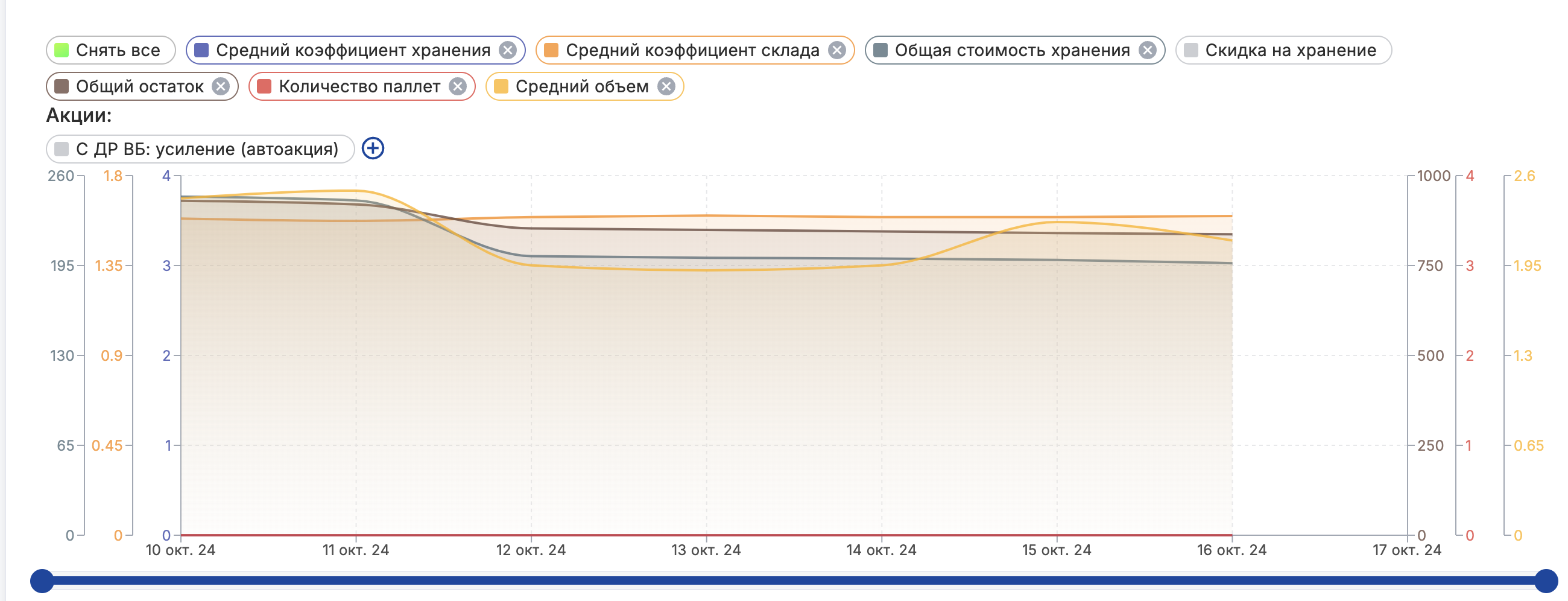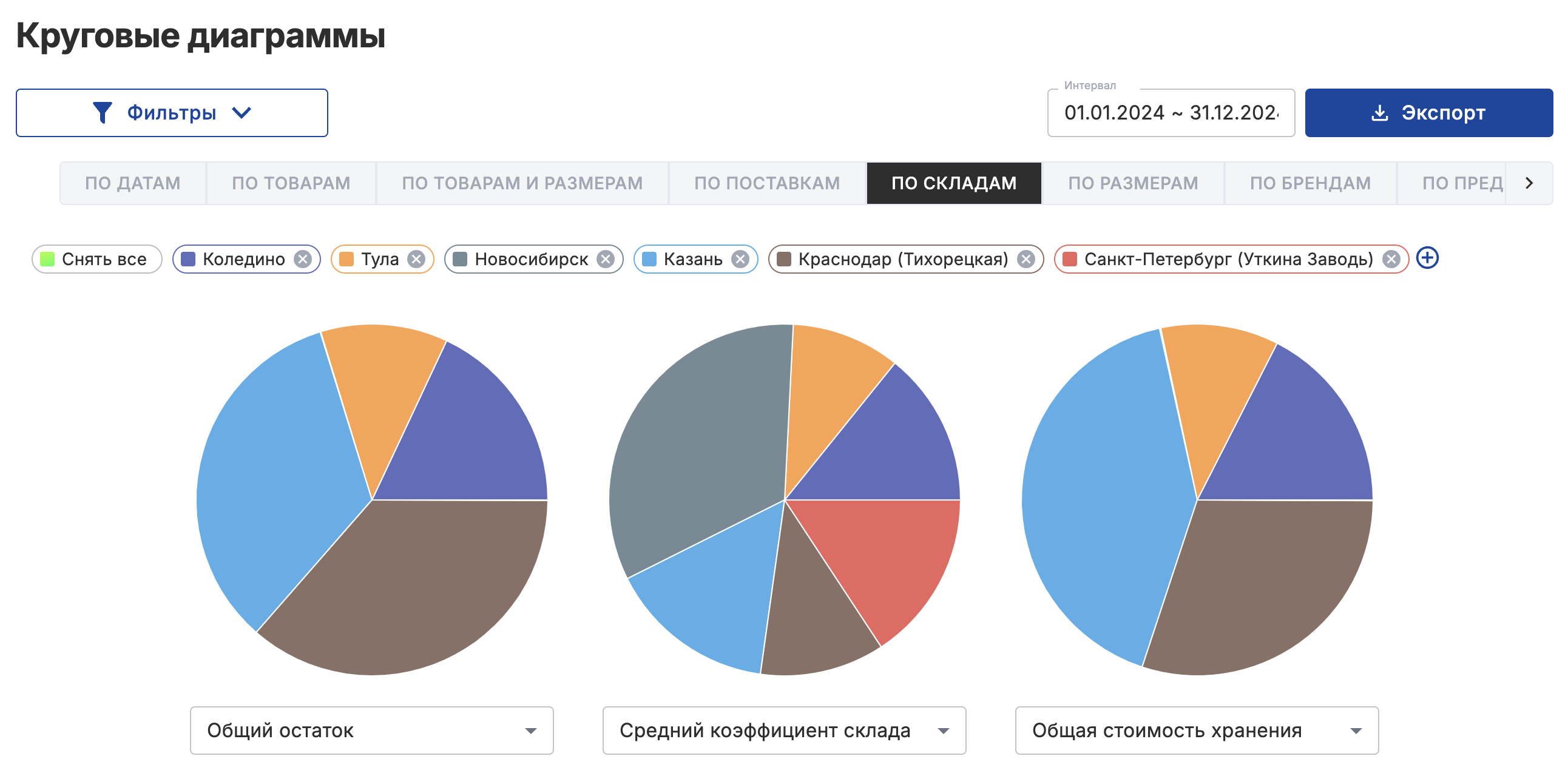 Помогут наглядно сравнить стоимость хранения ваших товаров на разных складах, какие товары и бренды тратят больше всего на хранение и тд.