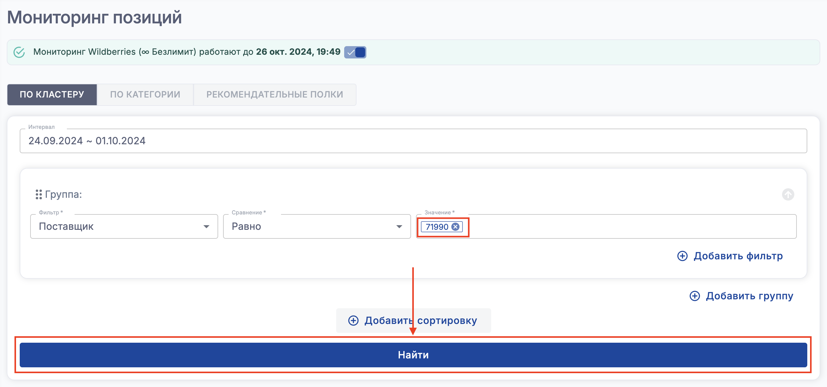 Нужно ввести номер поставщика в поле, нажать Enter и нажать "Найти"