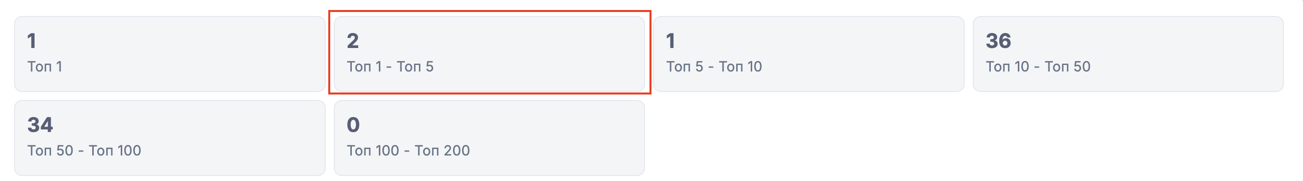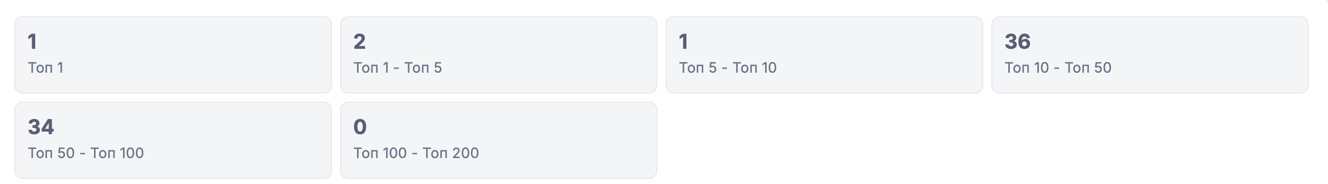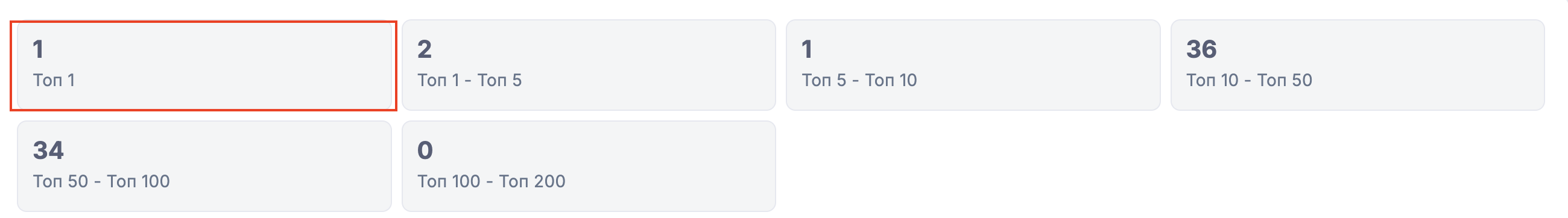 Отображает по какому количеству ключевых фраз товары находится в топах по позициям