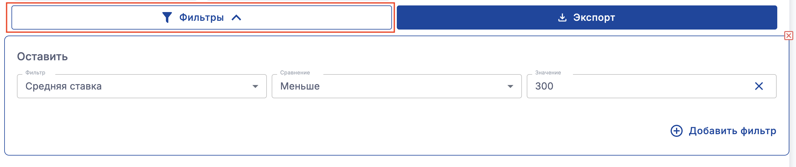 Вы можете применить дополнительные фильтры к таблице. Например, оставить карточки со средней ставкой меньше 300